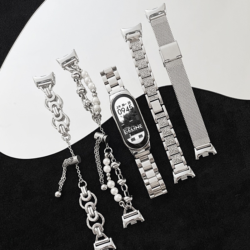 Pulseira De Substituição Miband 8 Metálica Para Xiaomi Mi Band 8 Smart Watch Fashion Silver Bracelet Aço Inoxidável