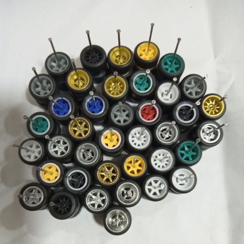 Rodas com pneus de borracha 10,8 mm para miniaturas 1:64.