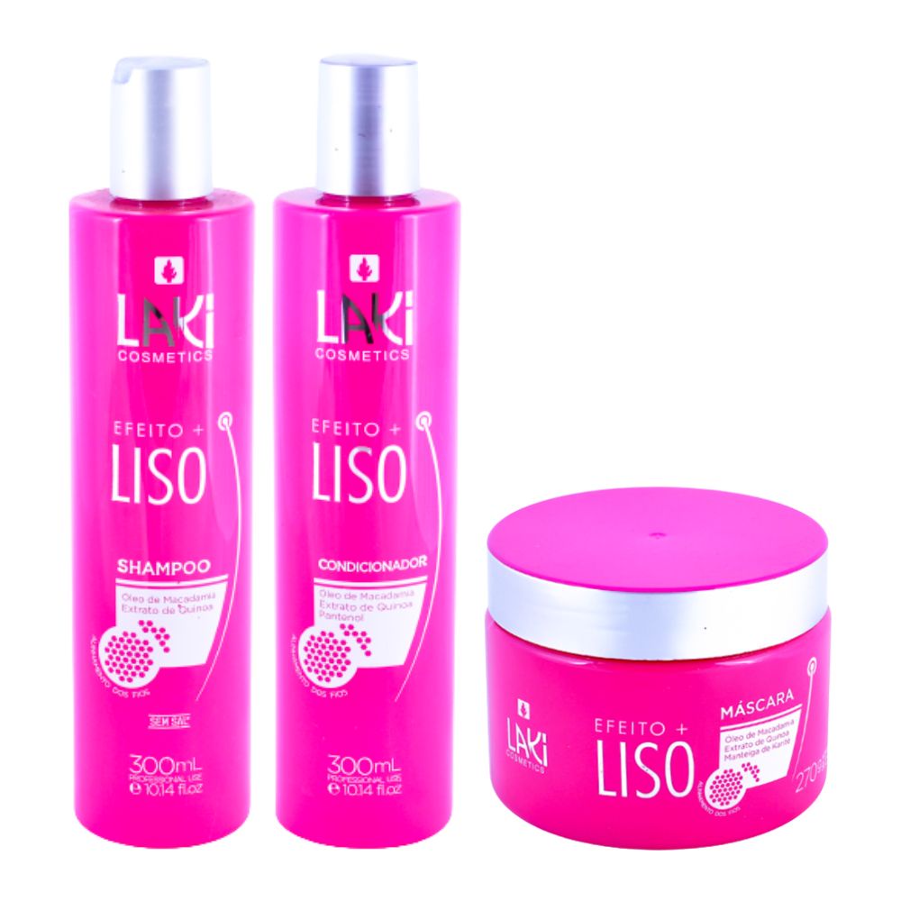 Kit Cuidados com o Cabelo Shampoo Condicionador Máscara Efeito + Liso Laki