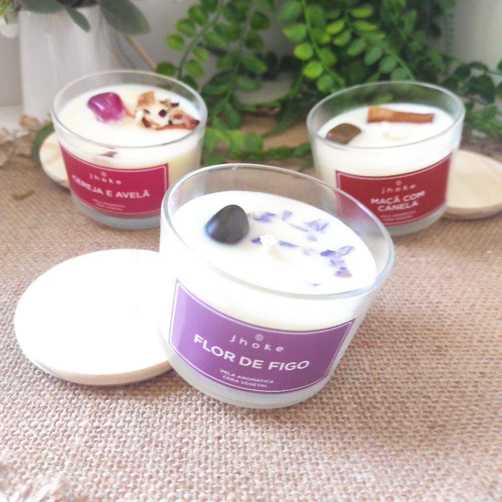 KIT TRÊS Velas Aromáticas Perfumadas 120 Gramas | Cereja e Avelã - Flor de Figo - Maçã com Canela