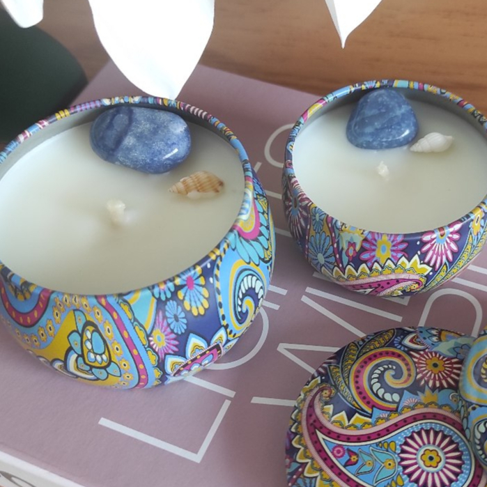 LANÇAMENTO * KIT DUAS VELAS Aromáticas Perfumadas na LATA DECORADA 70g e 13Og - Decorada com PEDRA CRISTAL
