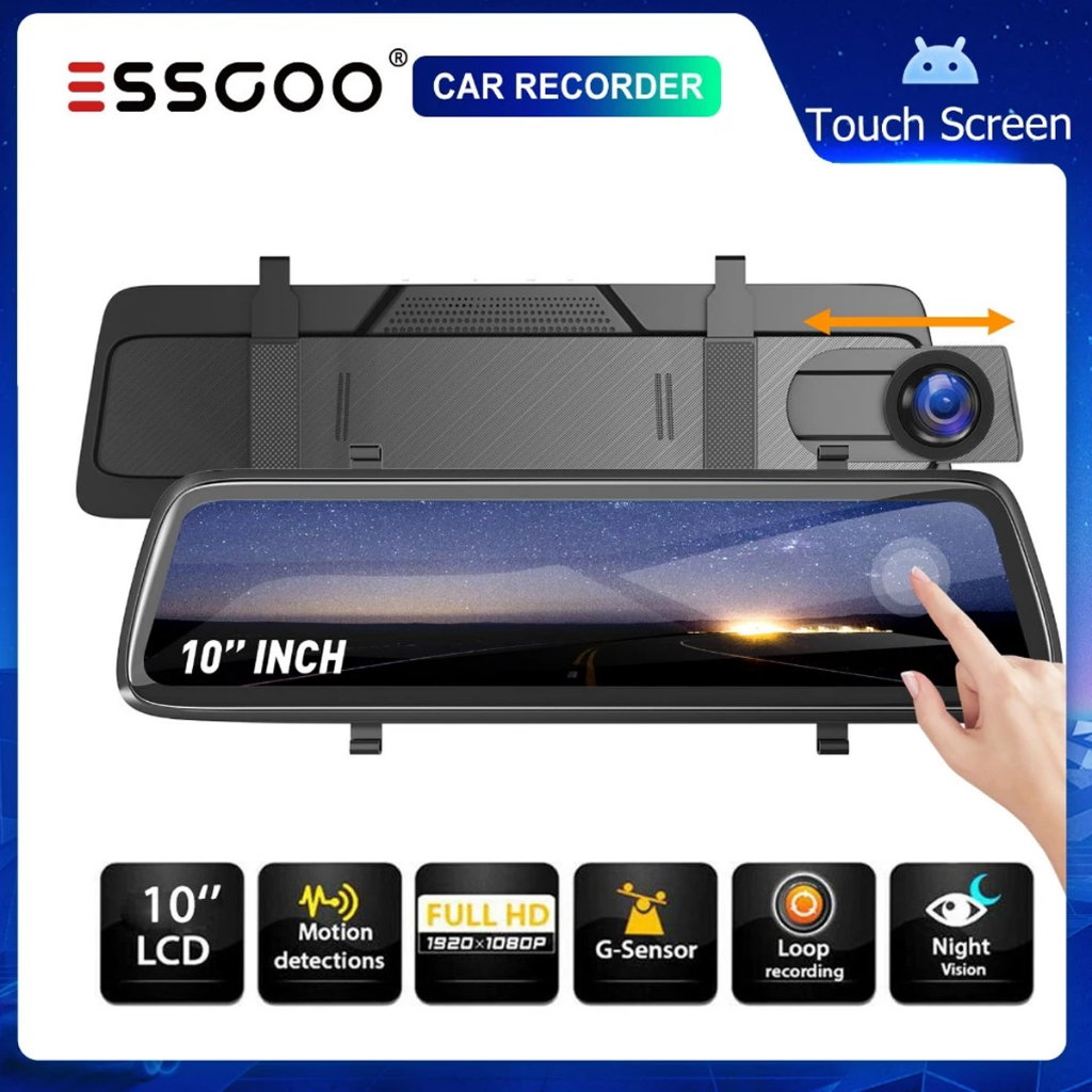 ESSGOO 10 Polegadas Carro Dash Cam 1080P Full HD Câmera De Visão Dupla Tela Sensível Ao Toque CAR DVR 170 ° Grande Angul