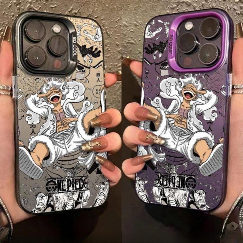 Capa Para Samsung Galaxy S24 Ultra S23 Plus S20 S21 FE S22 Nota 20 A51 A71 A72 A73 J7 Prime A10 Telefone Anime Cool One Piece Nika Gear 5 Luffy Laser Prata À Prova De Choque