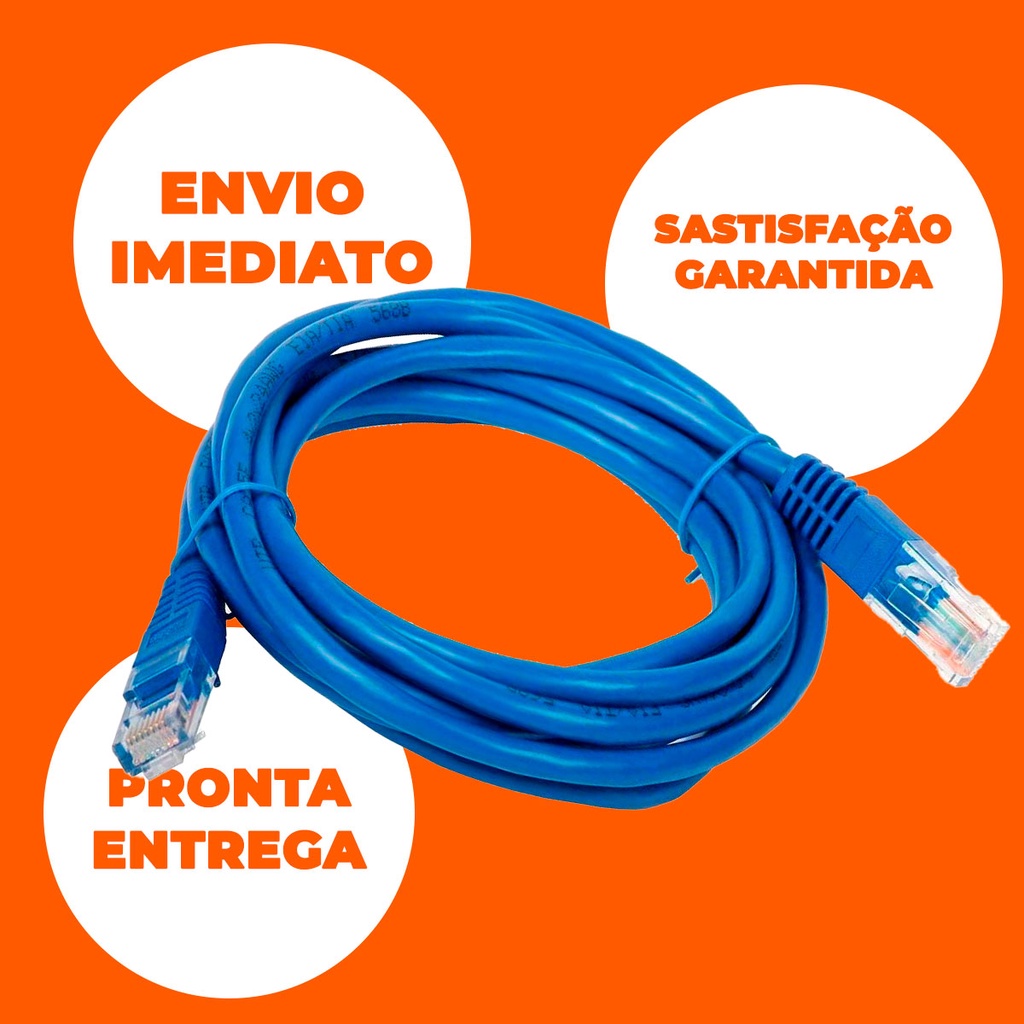 Cabo de Rede LAN Ethernet RJ45 CAT5e 3m 5m 10m 15m 20m e 30m Metros Cat5 e Montado 8P8C Homologado