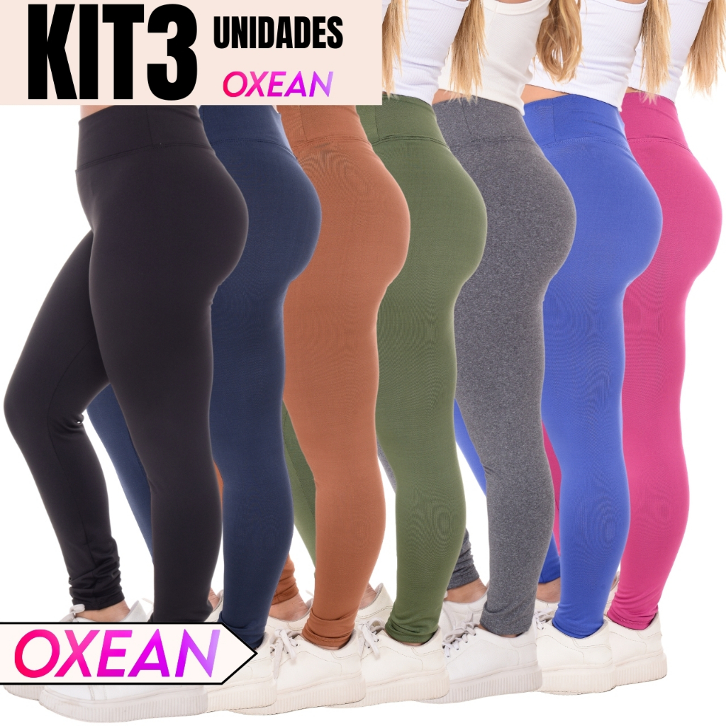 Kit C/ 03 Calça Legging Cintura Alta Leg Suplex Grossa Levanta Bumbum Zero Transparência