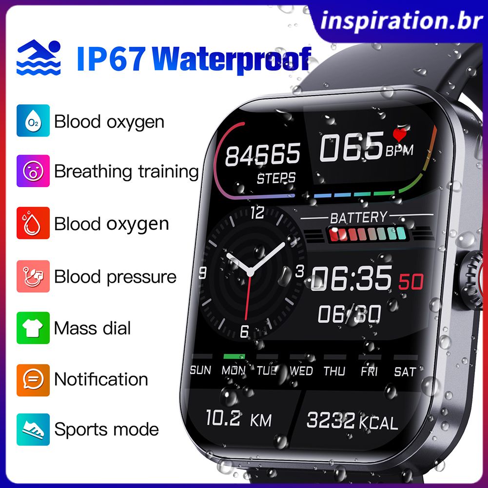 Monitor De Glicose Sanguínea Smartwatch De 1,9 Polegadas Monitoramento Da À Prova D'água Compatível Com Bluetooth Relógios Esportivos De Teste De