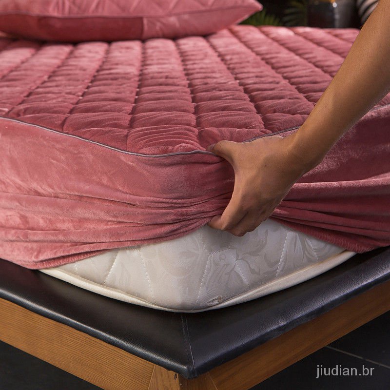 Capa de colchão acolchoada, de pelúcia, quente, macia, de veludo, acolchoada, king/queen, não inclui fronha