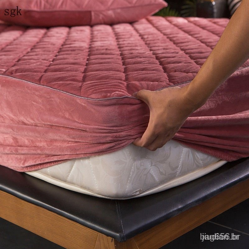 Lençol De Flanela De Veludo Pelúcia Espessa Cobertura De Colchão Cama Dupla Protetor De Teflon De Velo De Coral Leite De Peça Única