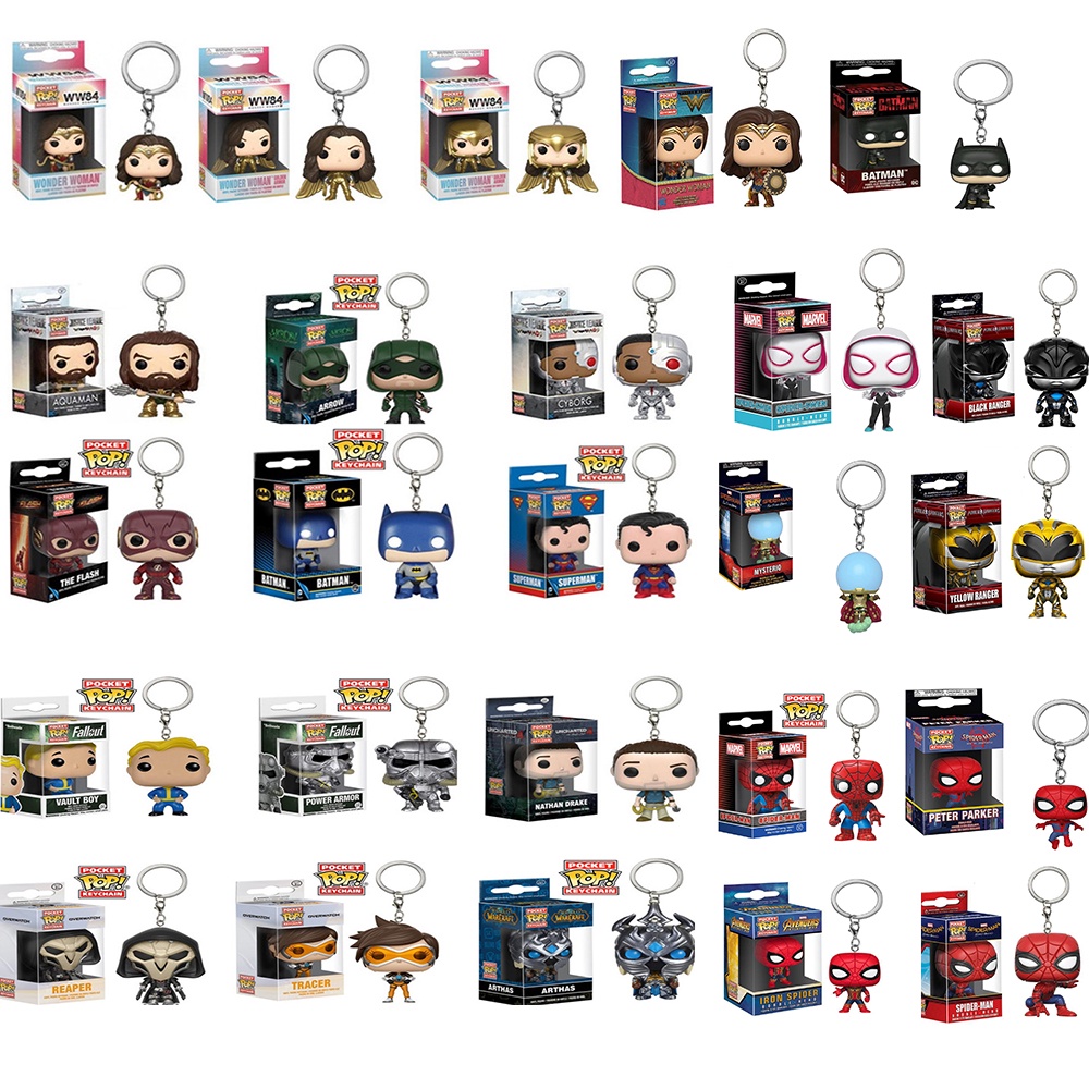 Chaveiro Funko Pop Marvel Spider-Man Wonder Woman Flash Batman Cyborg Arrow Tracer Reaper Vault Boy Gwen Stacy Peter Parker Iron Spider Spiderman Colecionável Figura De Ação Brinquedos
