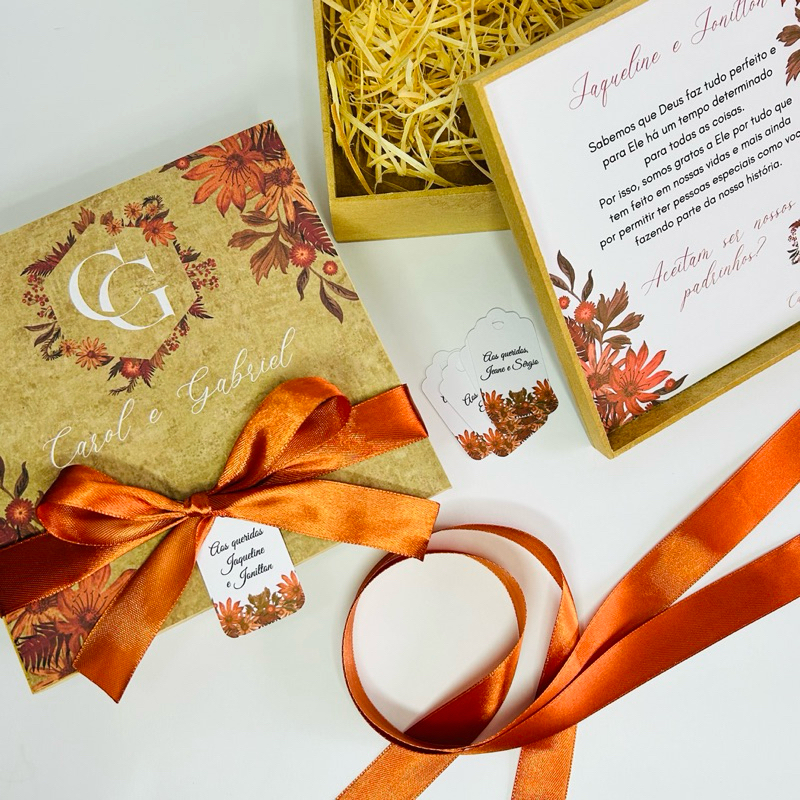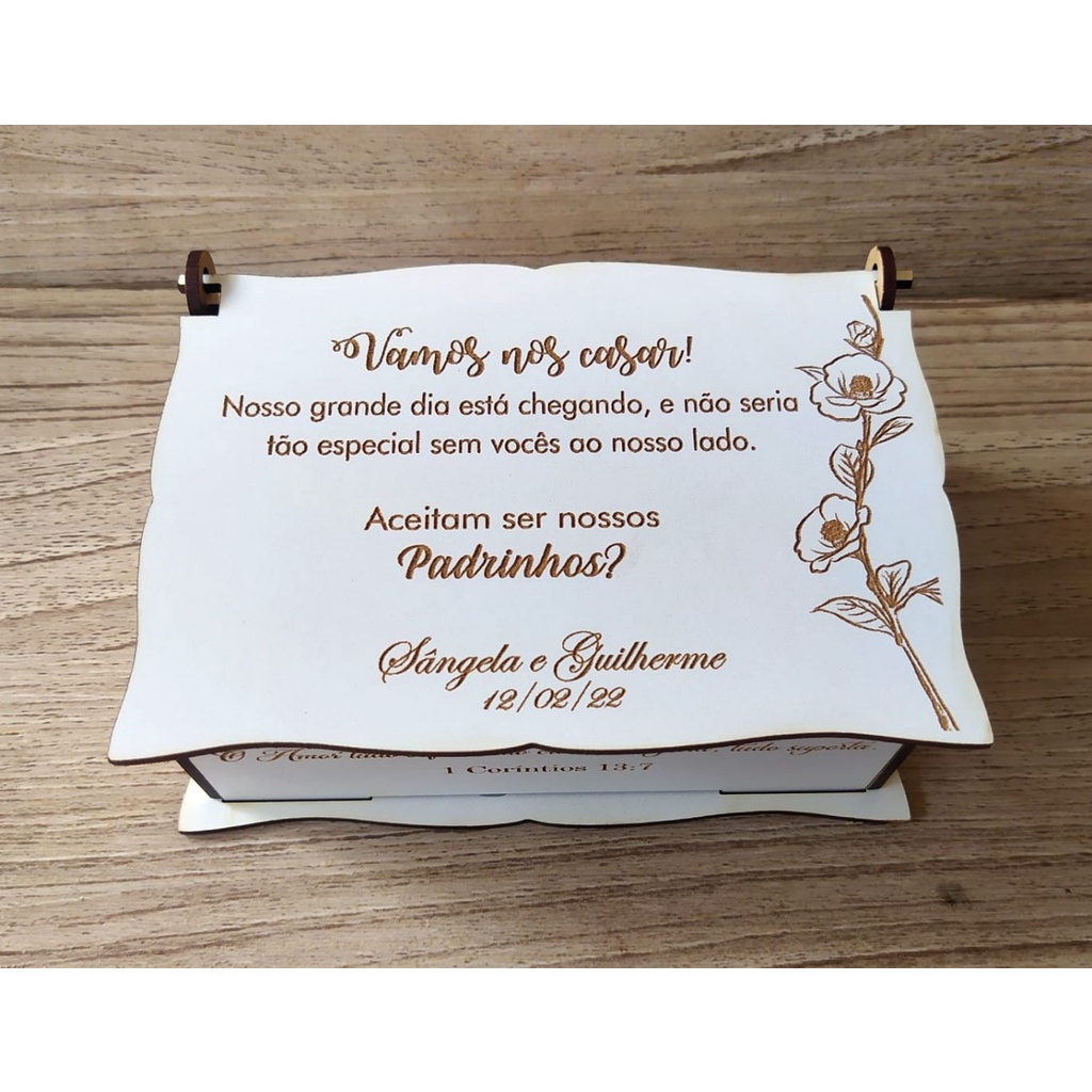 Kit 10 Caixas Padrinhos de Casamento + Convite Gravado