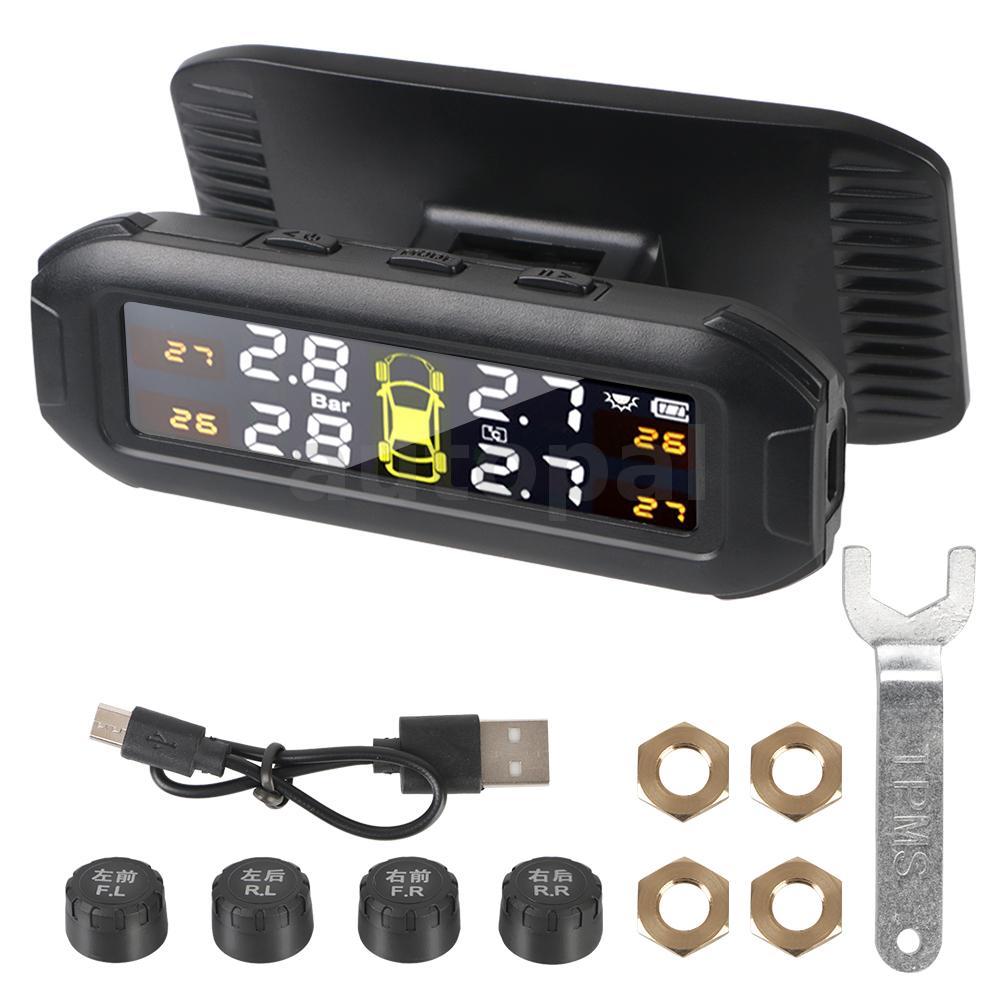 Sistema De Monitoramento De Pressão De Pneus TPMS Solar Sem Fio , Monitor Instalado No Escudo Da Janela Com 4 Sensores Externos Em Tempo Real Mostrador De Temperatura 22-87 PSI Para Ca