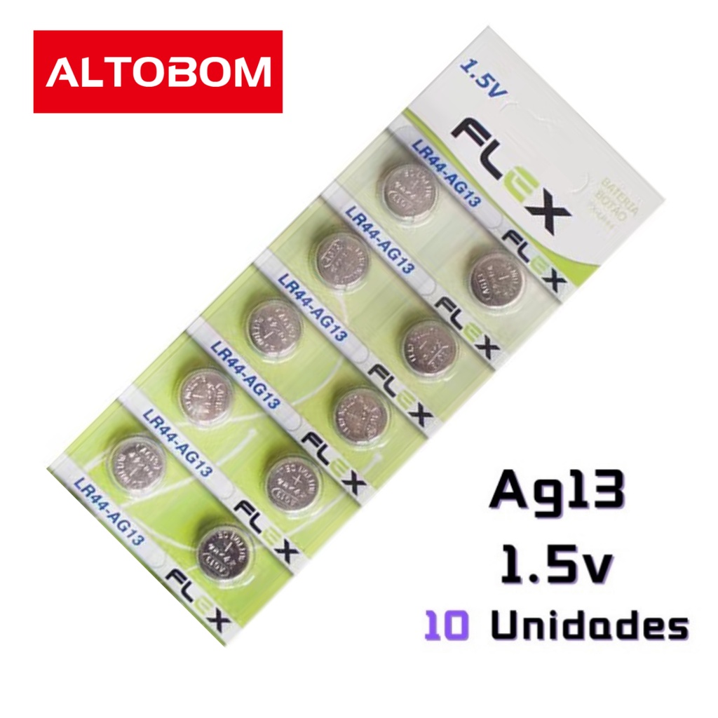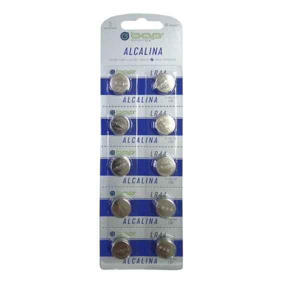 Pilha Botão LR44 Alcalina Bap 1.5v Cartela com 10 Unidades