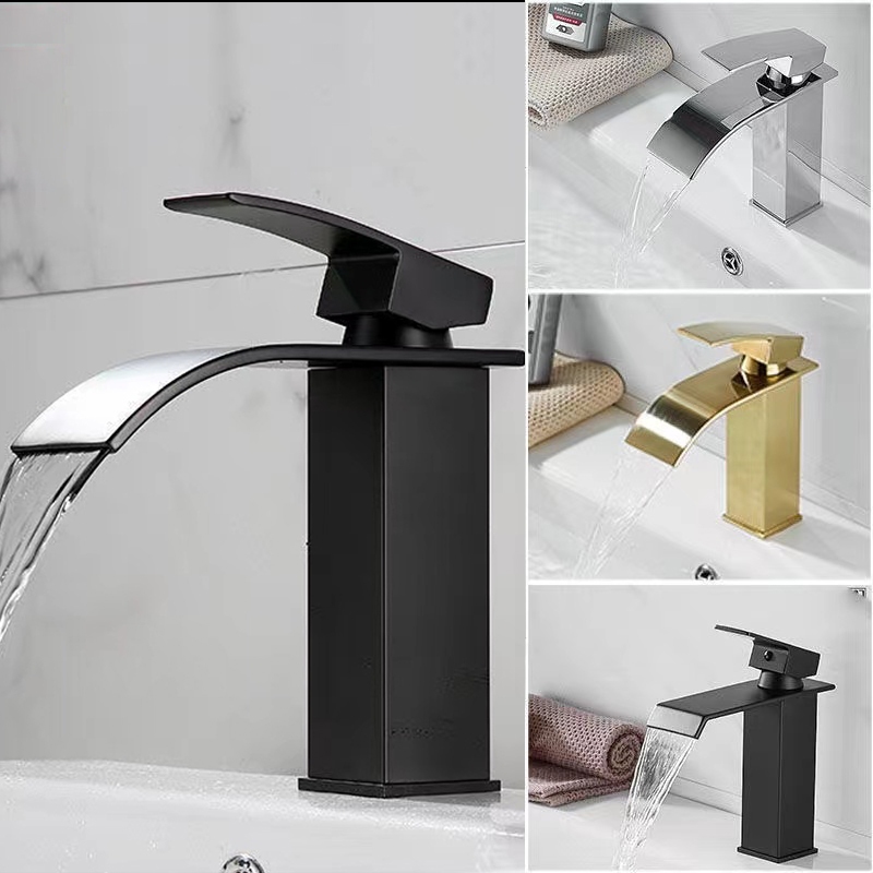 Torneira preta para lavatório de banheiro com torneira quente e fria para lavatório de mão dourado, material de latão, torneira dourada