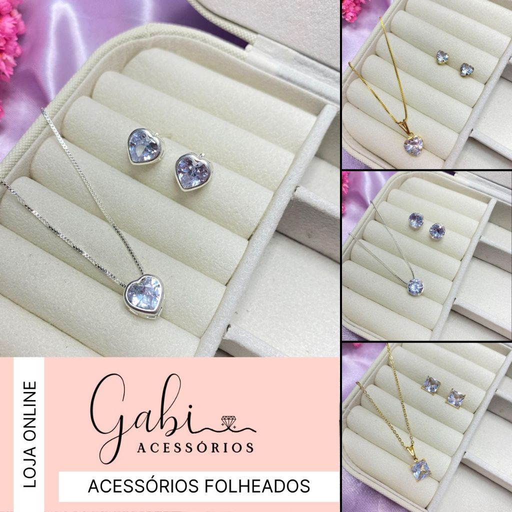Conjunto Feminino Colar e Brinco Folheado a Prata 925 ou Ouro