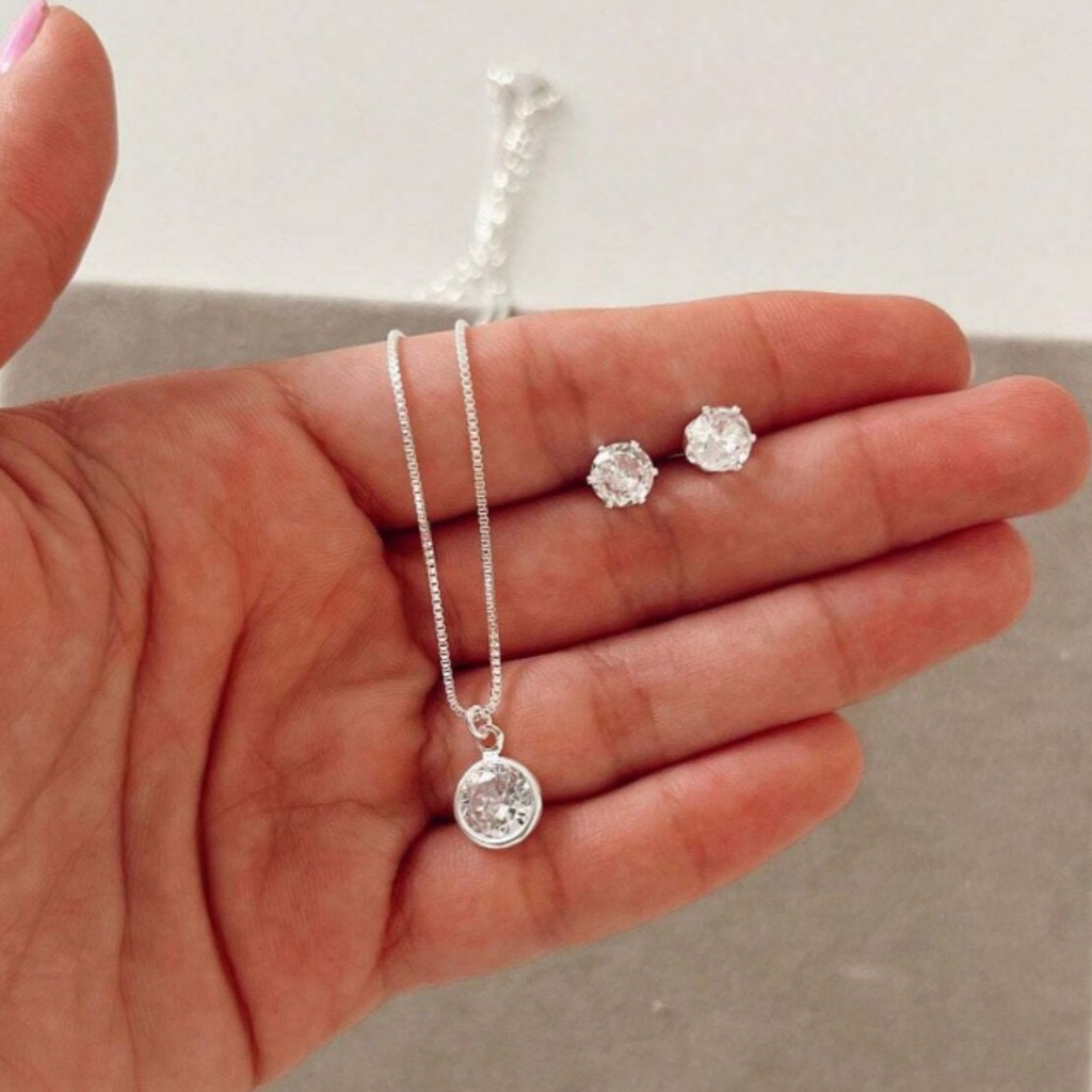 Conjunto Feminino De Colar e Brincos Ponto de Luz Banhado de prata 925 a Ouro 18k