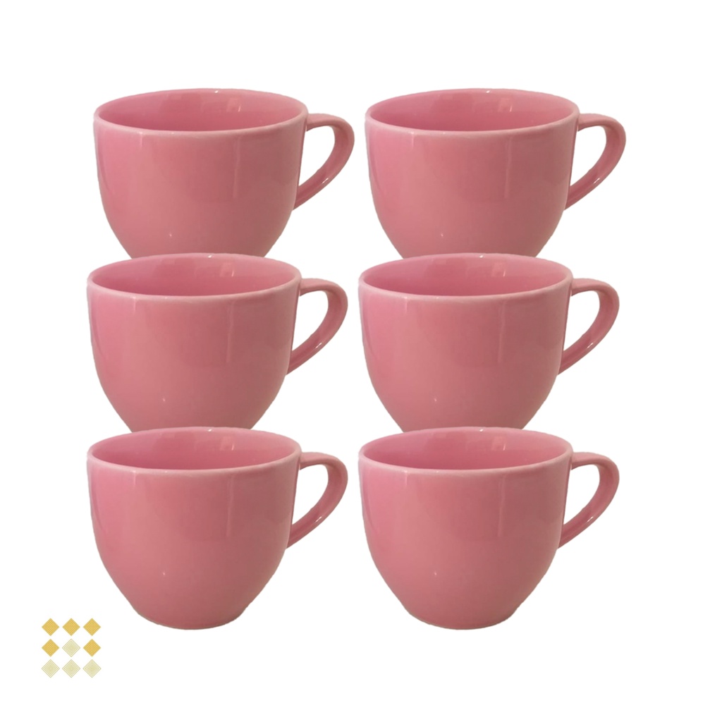 Jogo 6 Xicara Café Chá Porcelana Rosa 170ml - Mundo da Porcelana