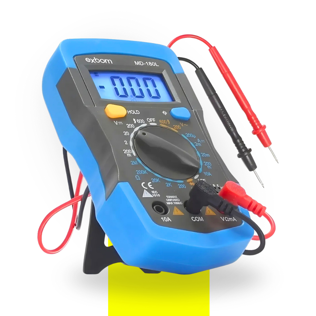 Multímetro Digital Profissional Portátil com Bipe Exbom Original 180 Litros tela LCD