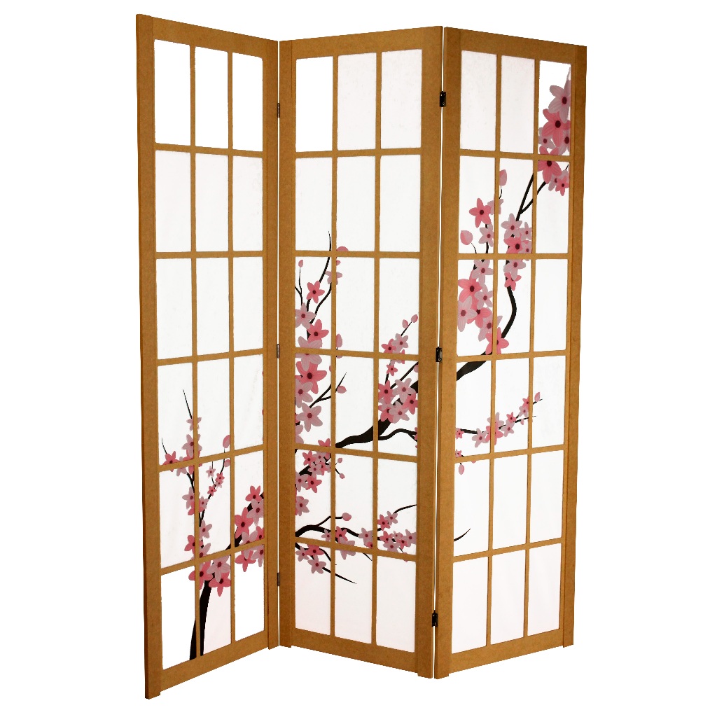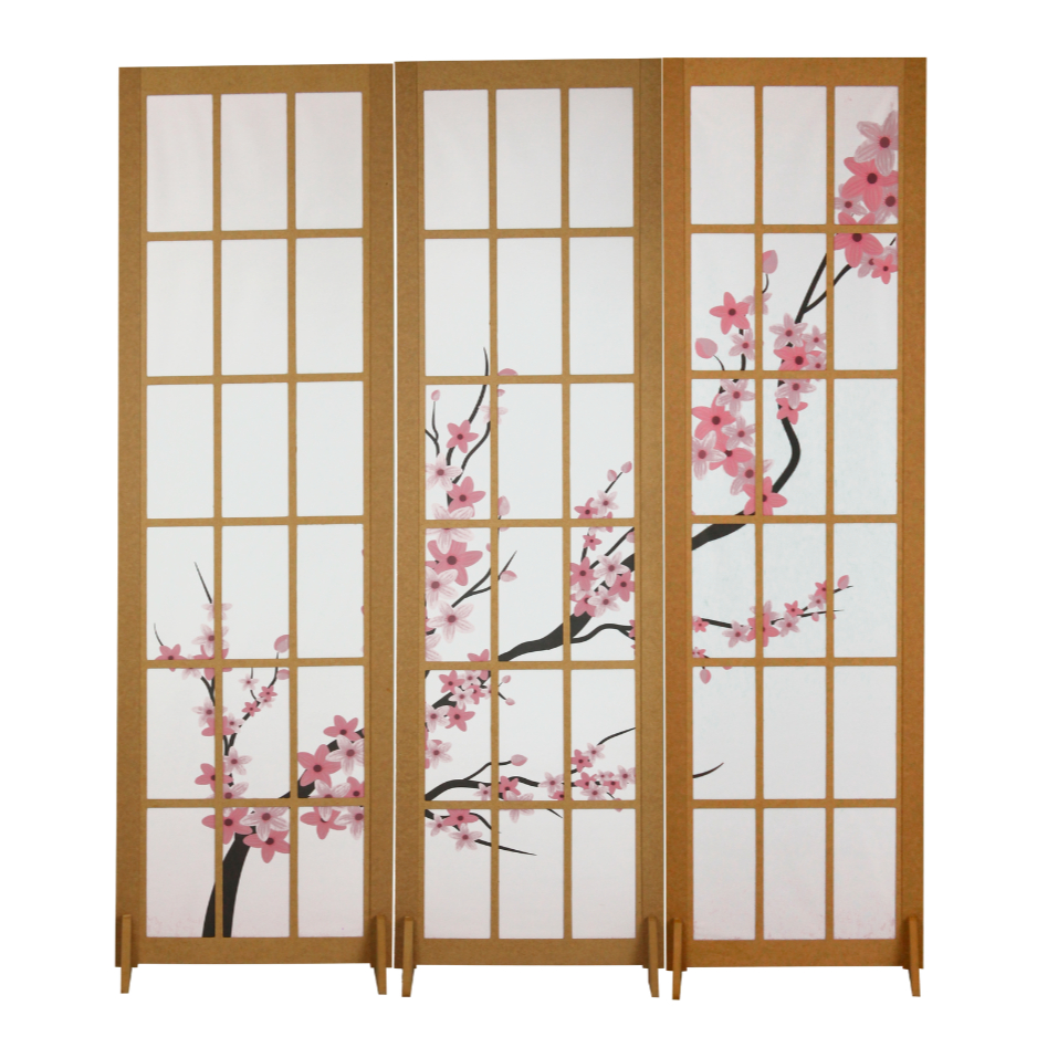 3 Biombo Inteiro Oriental Sanfonado Separador De Ambiente Japonês Folha Divisória Chinês Painel Divisor Asiático Flor Sakura Cerejeira Madeira Mdf Tecido
