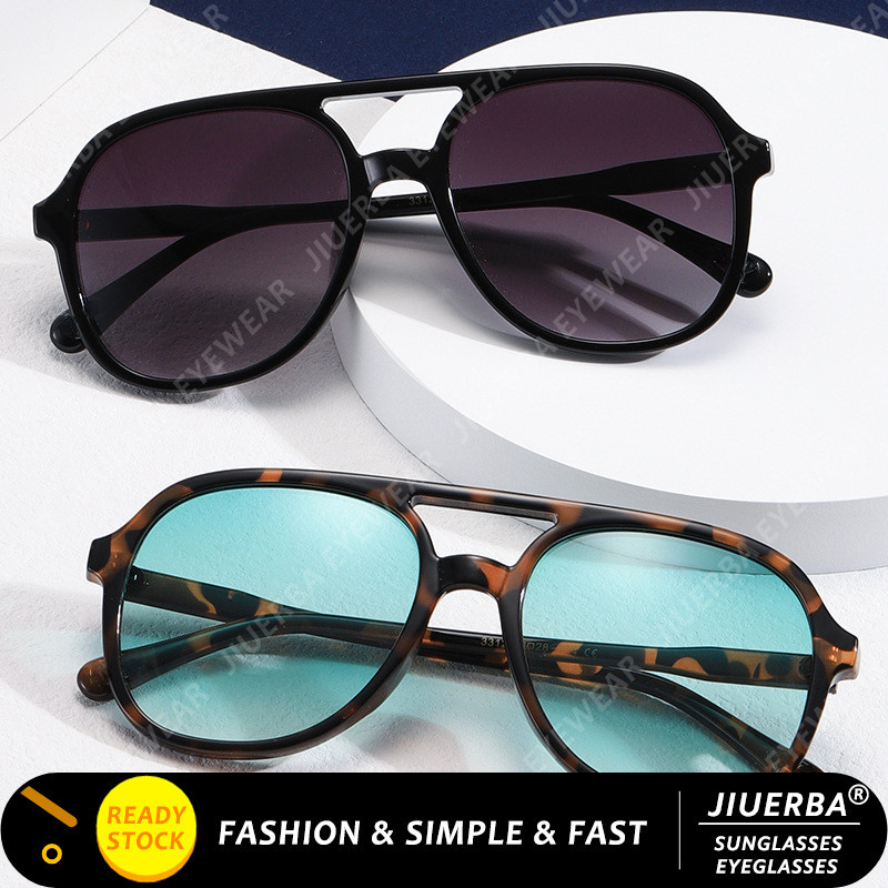 (JIUERBA) Óculos De Sol Aviador De Viga Dupla Retro Homens Coreanos De Moda Com Moldura Sobredimensionada Sunshade