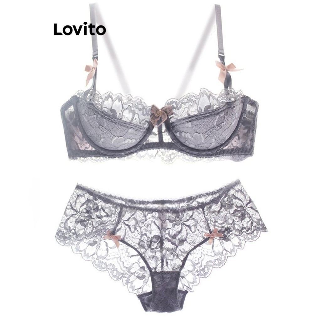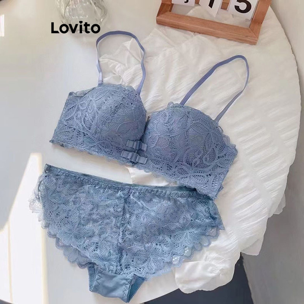 Lovito Conjunto de calcinha casual de renda lisa para mulheres LNL64272