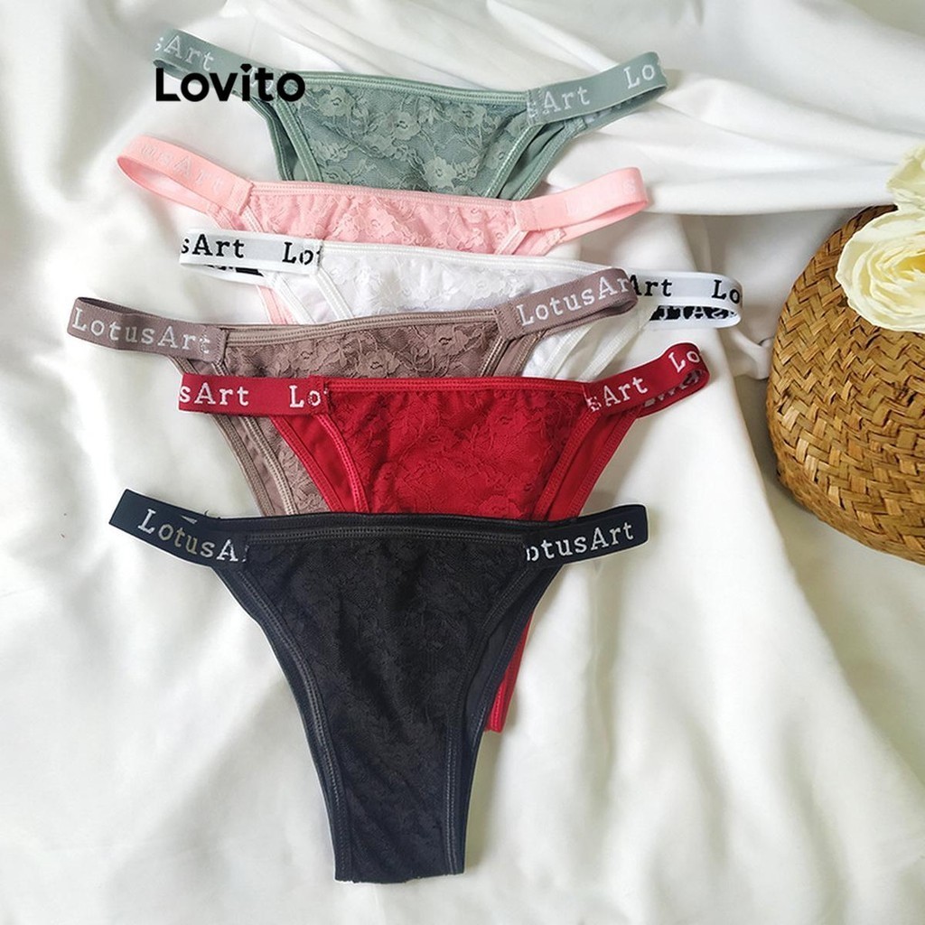 Lovito Calcinha Casual De Renda Lisa Para Mulheres LNE48198
