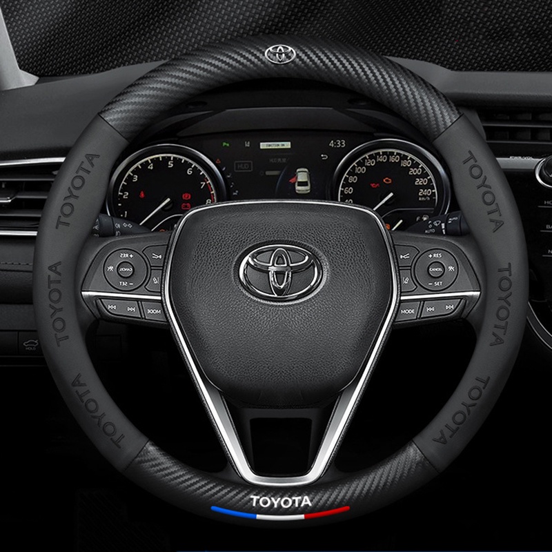 Capa Do Volante Em Couro De Fibra De Carbono Para Carros 38CM Toyota Avanza Vios Wigo RushHilux Corolla Cross Hiace RAV4 FJ Cruiser Yaris Camry Alphard Altis Sienna