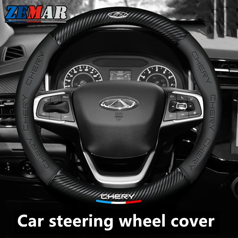 Capa Do Volante Carro Chery Para 38CM Tiggo 4 8 7 5x Face QQ Eastar Carbon Brazing 3D Logotipo De Impressão