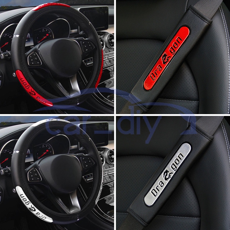 Capa Protetora Do Volante Carro Para 38cm/15 Polegadas E Cinto De Segurança Refletiva Ombro Dragão Acessórios Automotivos Decorações