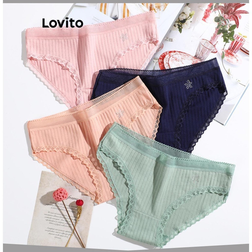 Lovito Calcinha Casual De Renda Lisa Para Mulheres LNE48198