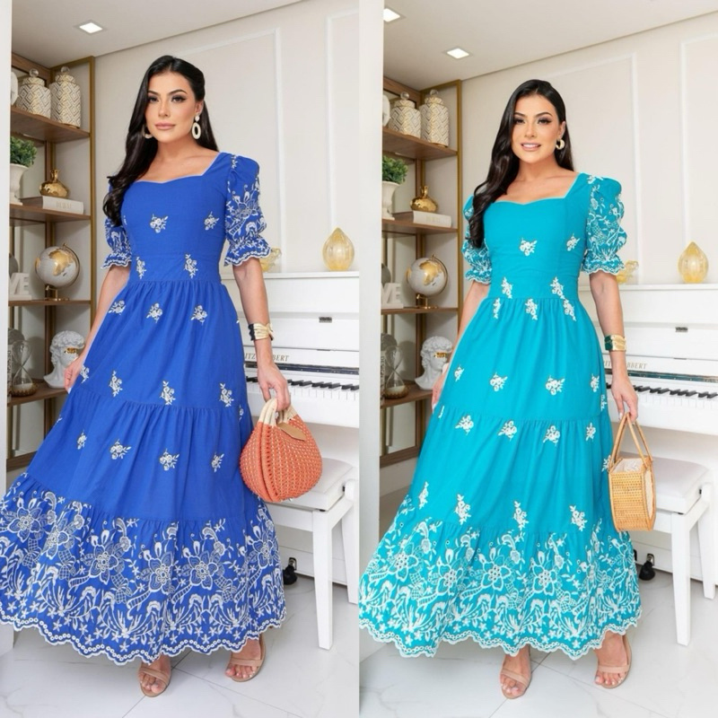 Vestido Longuete Lese Manga Princesa Luxo Promoção De Lançamento