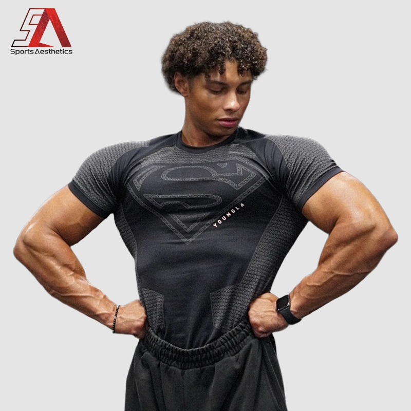 Camisa Esportiva De Fitness Muscular Masculina Superman Camiseta Nova Elástica De Secagem Rápida Respirável Casual Corre