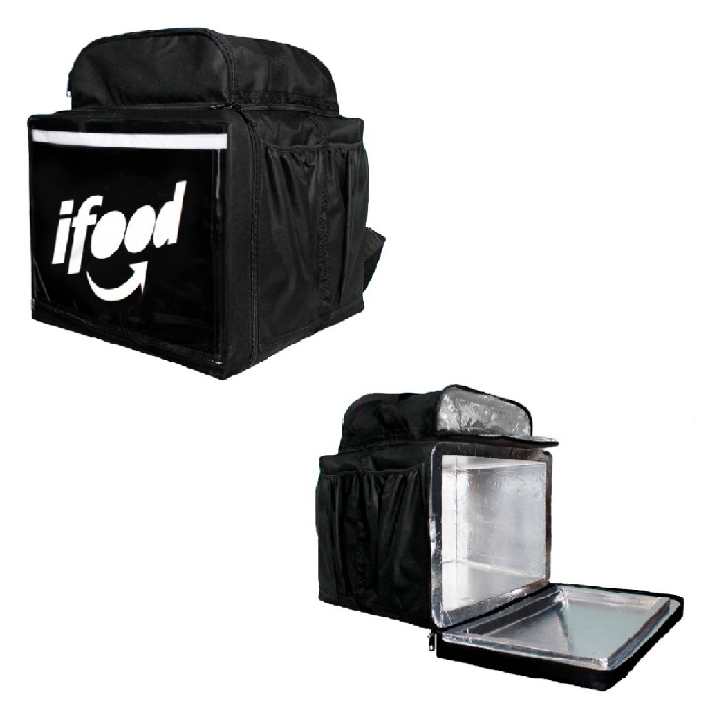 Bolsa Bag Mochila Motoboy 45L Preto com Isopor Laminado Ifood Preto