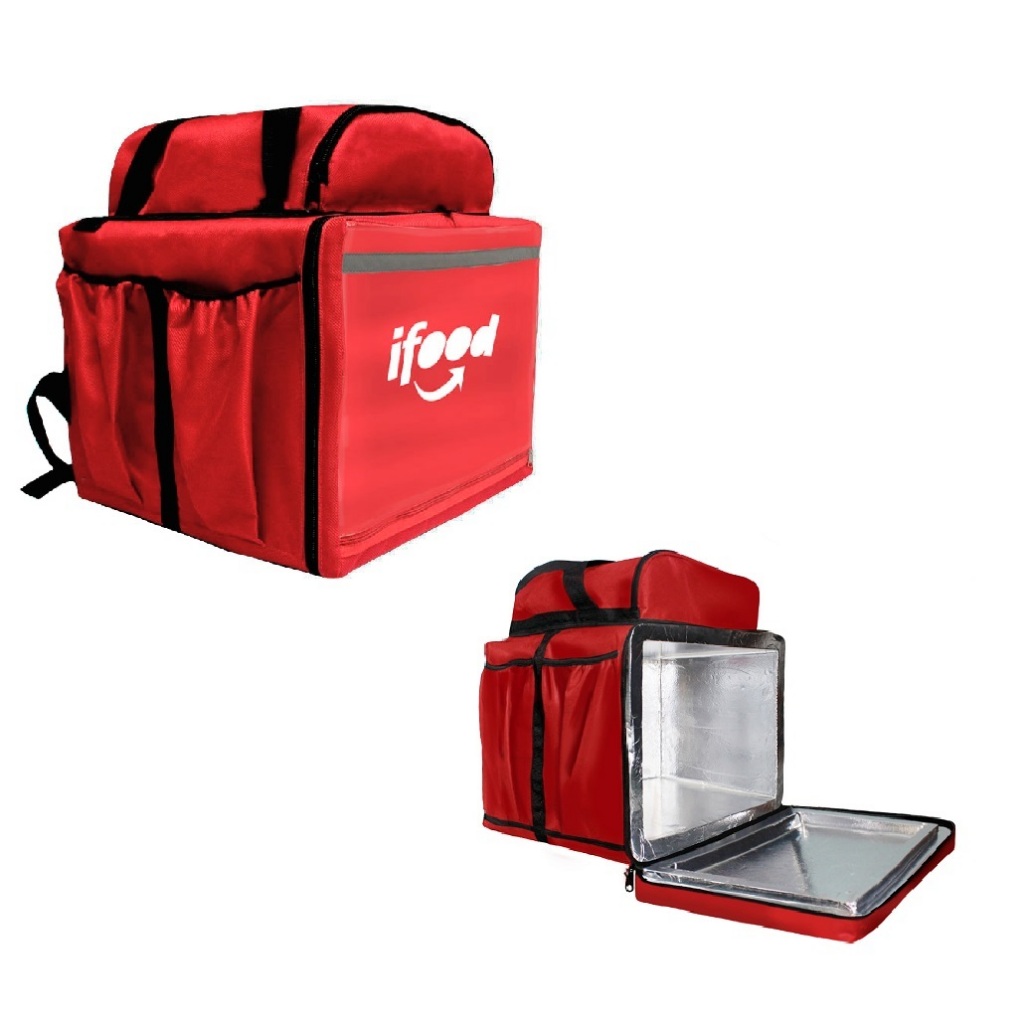 Bolsa Bag Mochila Motoboy 45L Vermelha com Isopor Laminado Ifood Vermelho