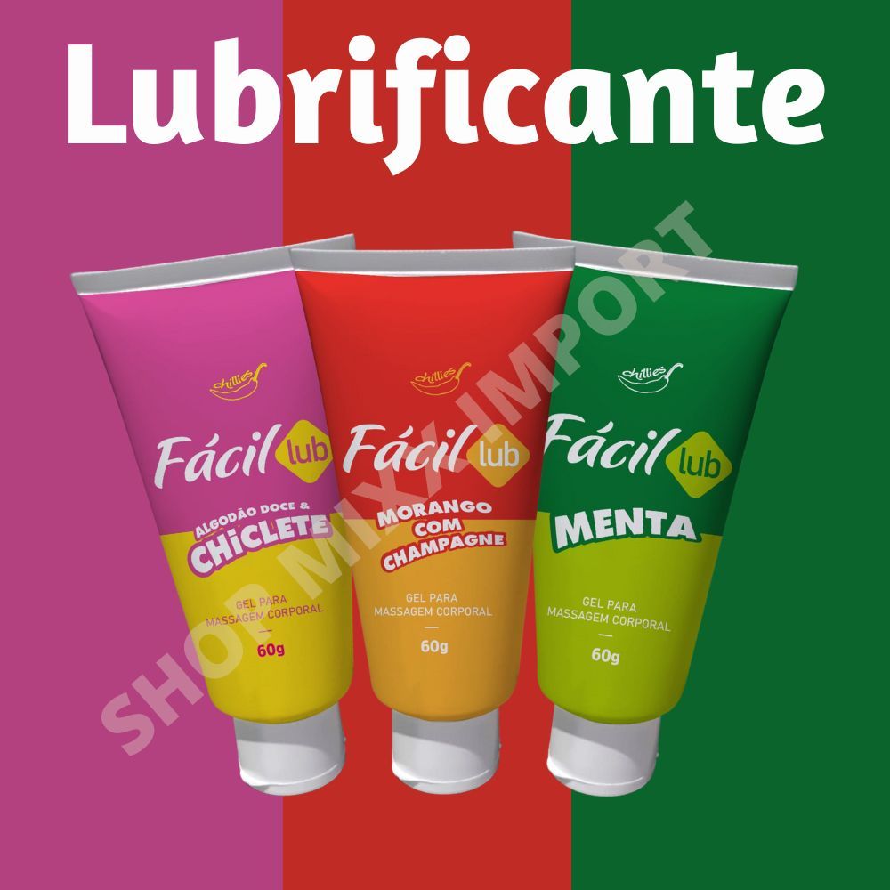 Kit 3 Géis Lubrificantes Fácil Lub 60G Chillies - CHICLETE / MENTA / MORANGO