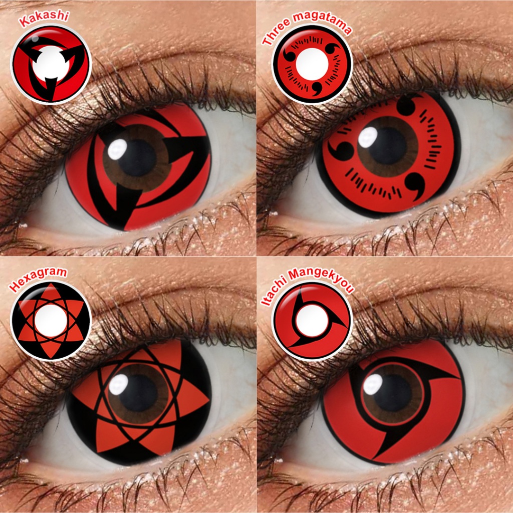 Eyeshare 2 Peças/Par Lente De Contato Naruto 14,5mm Cosplay Vermelho Anual Para Lentes Sharingan Eyes