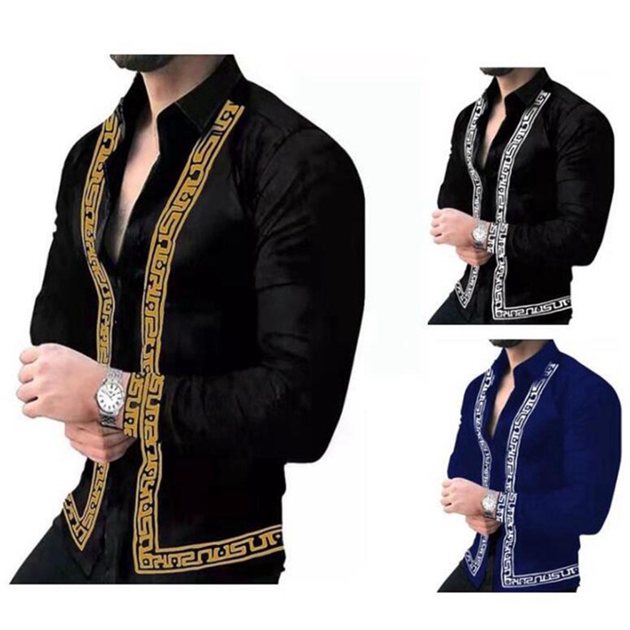 Camisas Masculinas De Luxo High-End Casual Manga Longa Marca Outono Nova Moda Preta Vestidos De Estampa S-3XL Camisa Social