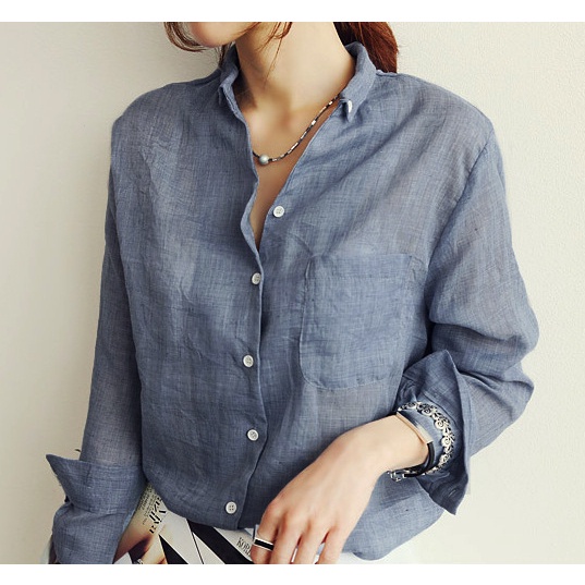 Nova Camisa De Linho De Algodão Feminino Manga Longa Casual Fina De Proteção Solar Feminina