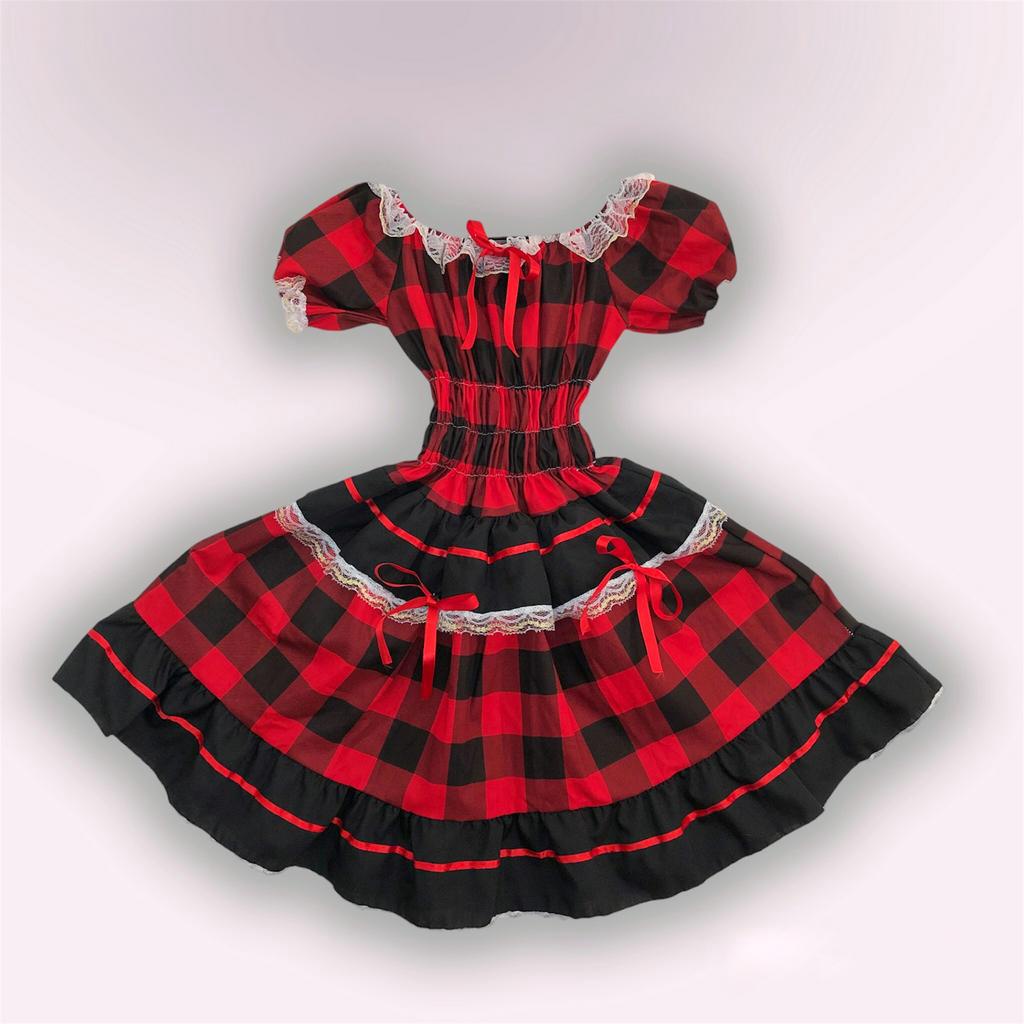 VESTIDO CAIPIRA INFANTIL ADULTO ANIVERSÁRIO FANTASIA QUADRILHA TEMA TEMÁTICO FESTA ARRAÍA SÃO JOÃO COM LAÇO