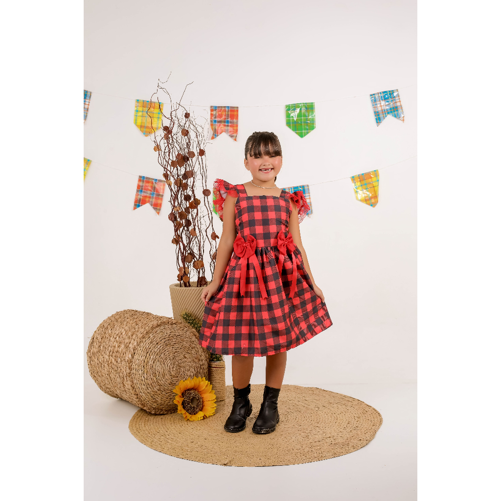 Vestido Infantil Festa Junina Country São João Xadrez Laço Quadrilha Dança Escola Mini Diva Blogueira Nordeste Fantasia Babado Super Tendência Juvenil Julina Típica Rainha Da Pipoca Menininha Menina Festividade Novo Lançamento Preto Rosa Pink E Vermelho