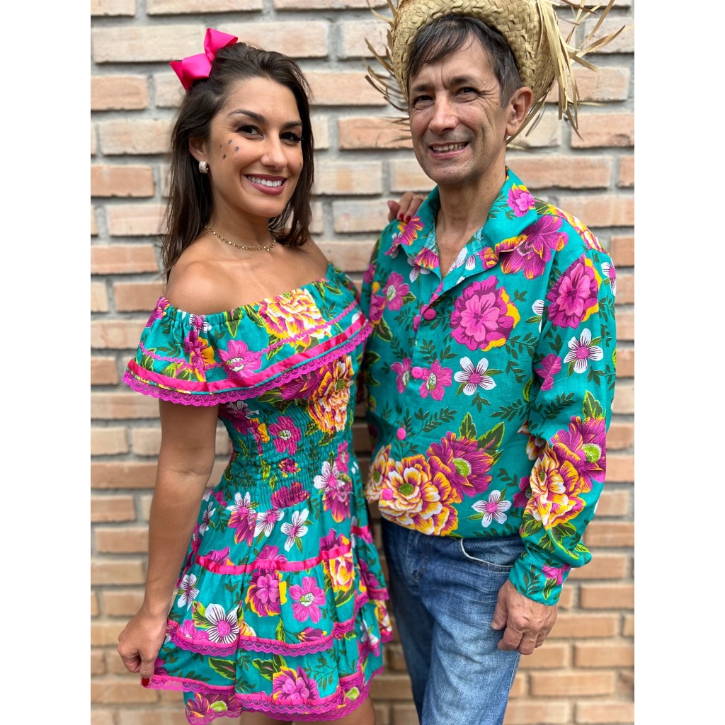 Conjunto de casal - camisa e vestido P-M - kit casal festa junina arraiá são joão quadrilha charraiá namorados