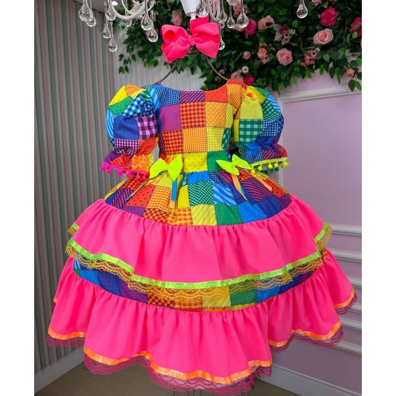 Vestido festa junina luxo infantil arraia São João junino roça quadrilha