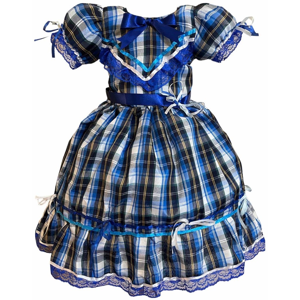 Vestido Xadrez Azul São João Caipira Infantil Criança Barato Festa Junina Quadrilha 2024
