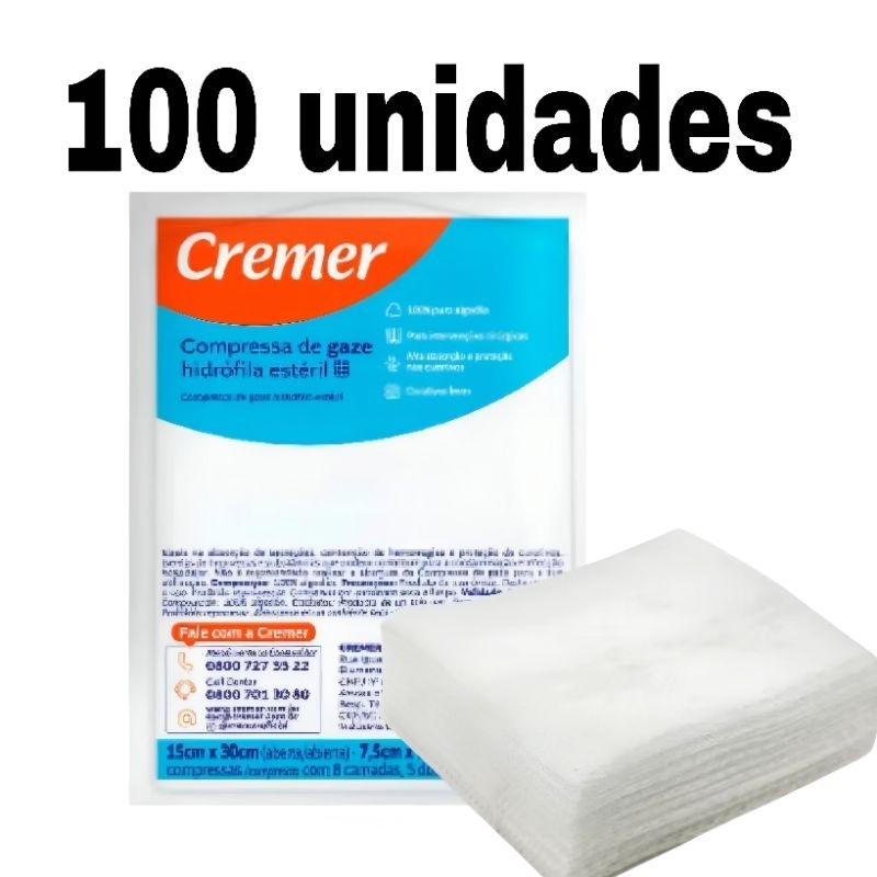 Kit Gaze Estéril 13 Fios Curativo Cicatrização Higiene 10 Unidades 7,5 X 7,5 Cm - Cremer. 10/20/30/40/50 unidades