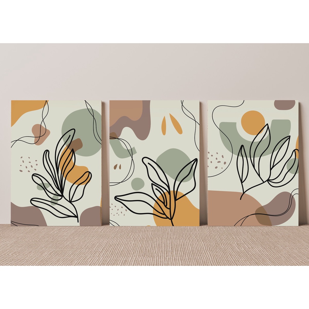 Kit Quadros Decorativos 3 peças 40x60 3mm Boho Abstrato E Floral cores folhagens verde laranja marron decoração para casa sala quarto