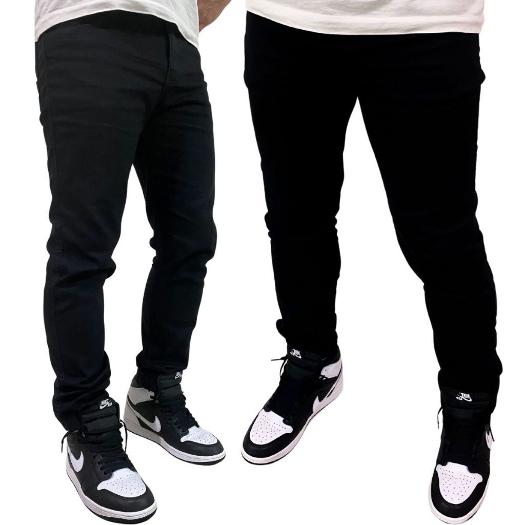 Calça Jeans Masculina PRETA Kit Com 2 Slim Fit Premium Lycra