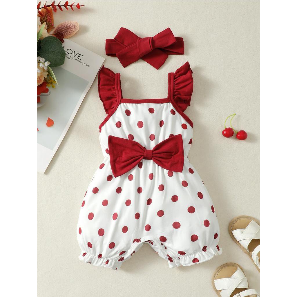 0-2 Anos de idade Recém-nascido Menina Recém-nascida Summer Sleeveless Flying Sling Bowknot Polka Dot Calção de macacão estampado