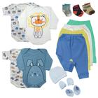 Body Bebê Mijão Liso Estampado Kit 14 Peças Roupa Bebê Meia Tênis Infantil saída de maternidade Menino