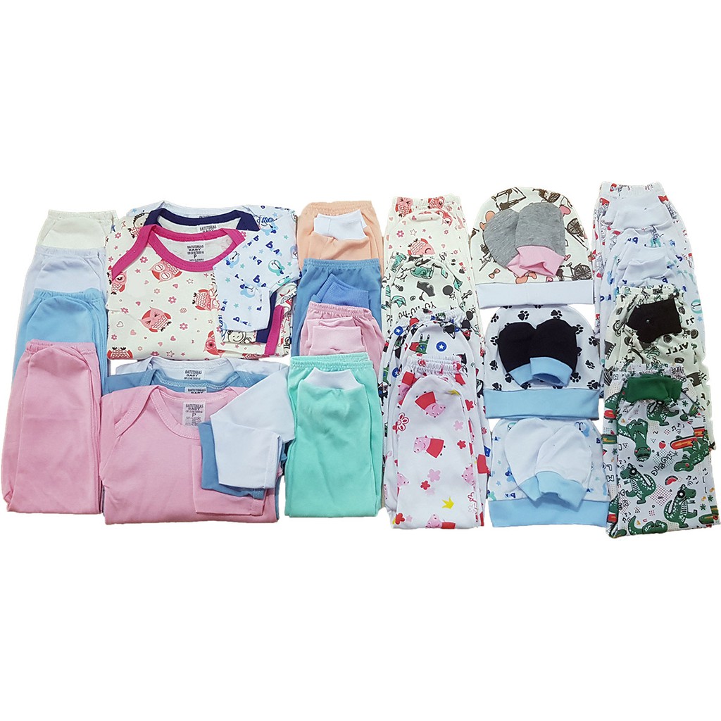 kit enxoval body e mijão 6 peças bebê menino e menina Algodão estampado e liso sortidos