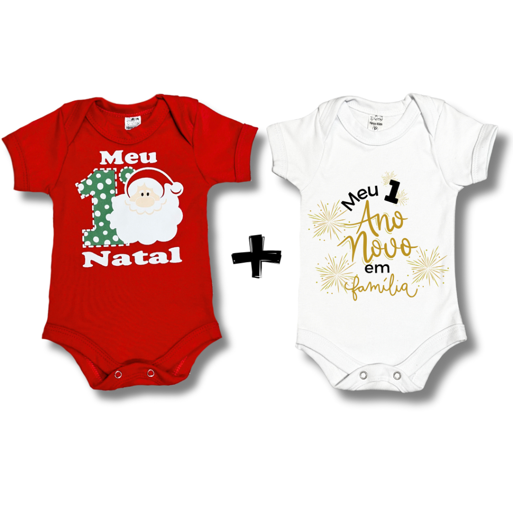 Kit 2 Body Look Ano Novo e Natal Infantil Bebe Tematico 100% Algodao