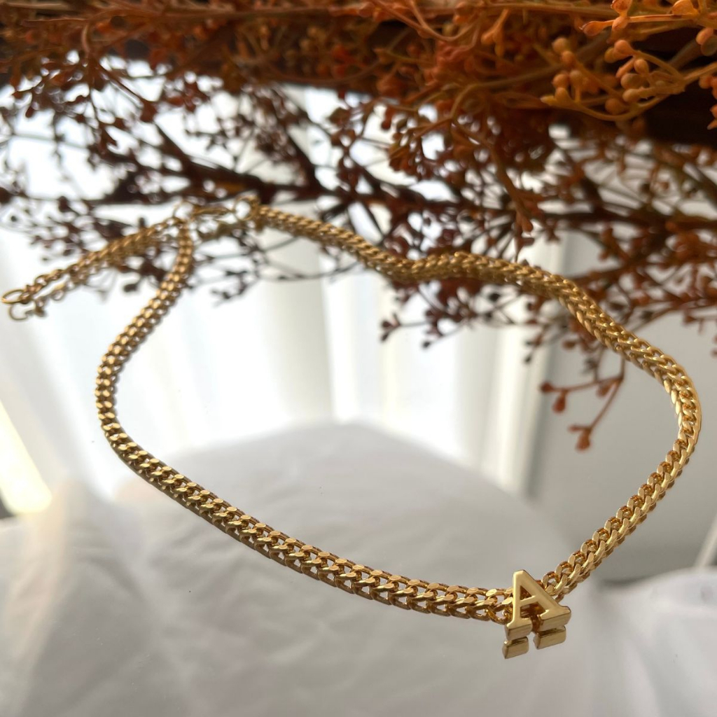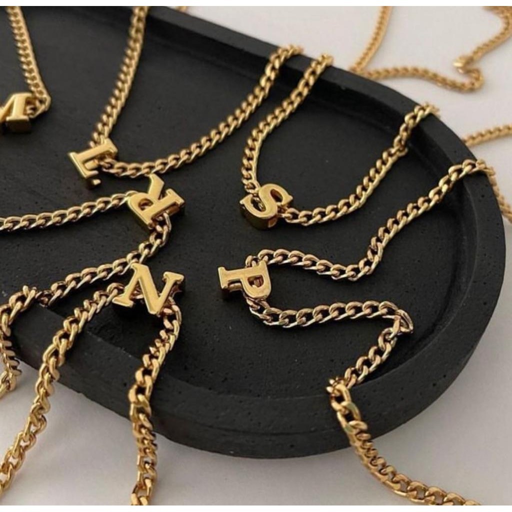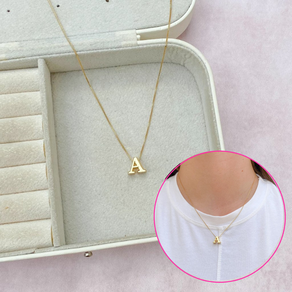 [ SEMI JÓIA ] Colar Inicial Letra Robusta (45cm), com Banho Alto Padrão em Ouro 18k ou Prateado Anti Alérgico